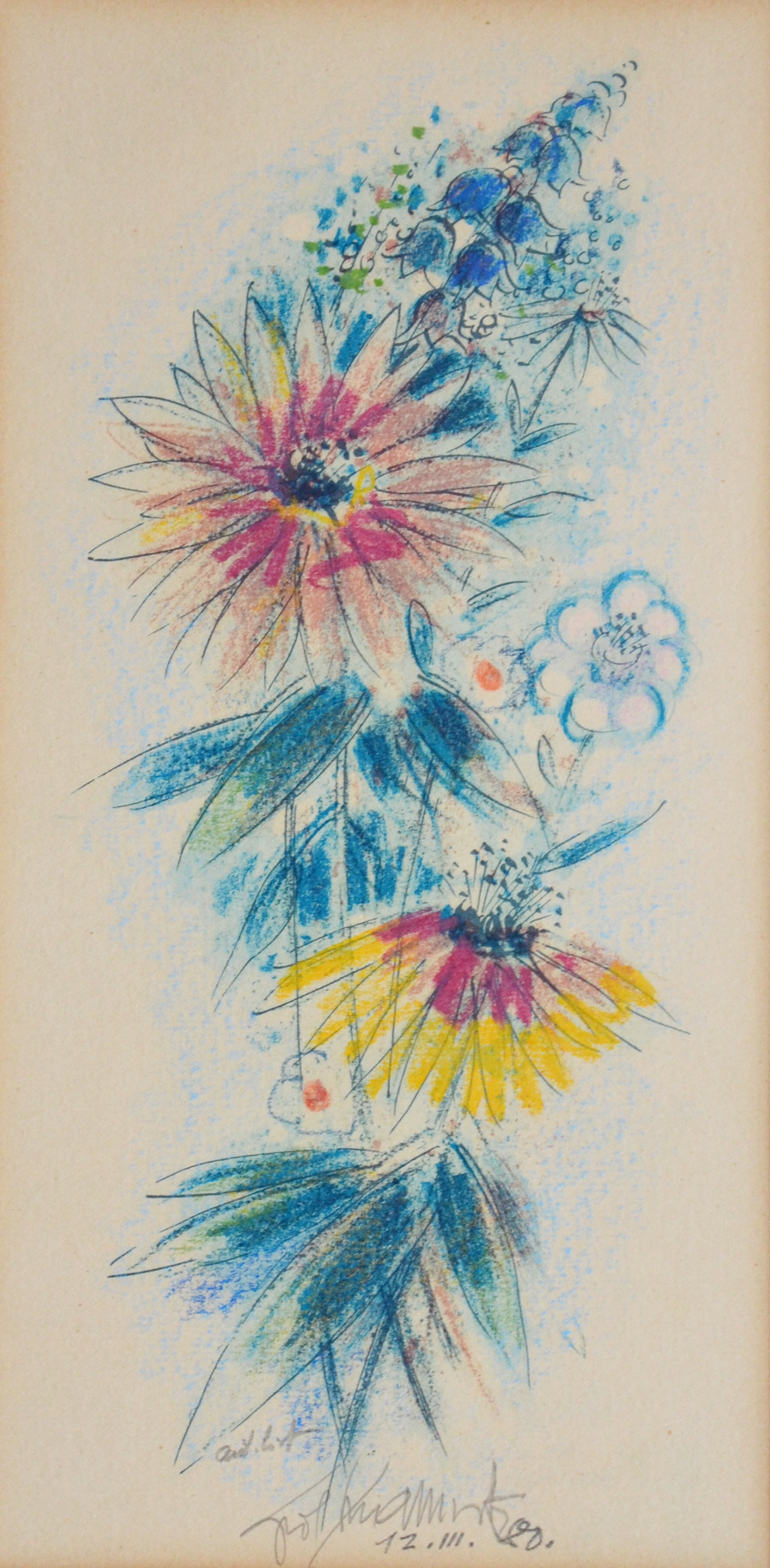 Cyril Chramosta, Květiny 1980, bar. litog., aut. list, 18x30,5, ps 25x40, v 13,5x27,5 (4)