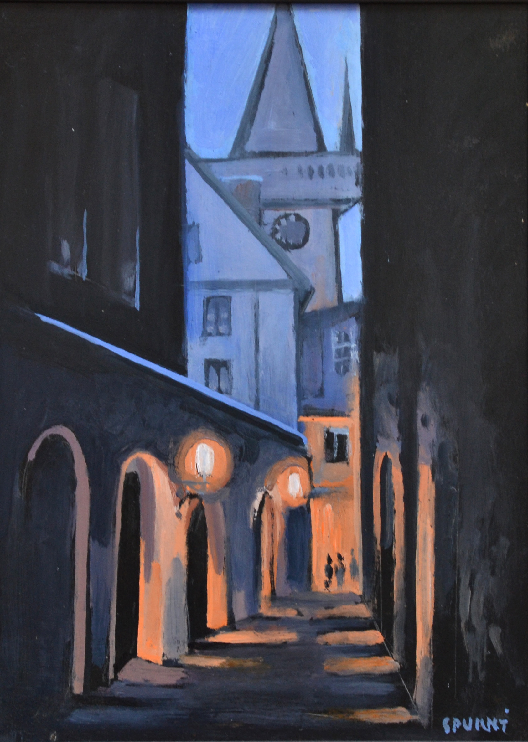 Josef Spurný ak. mal. Noční uličkou, olej sololit,  25x34, v rámu 31x40 (4)