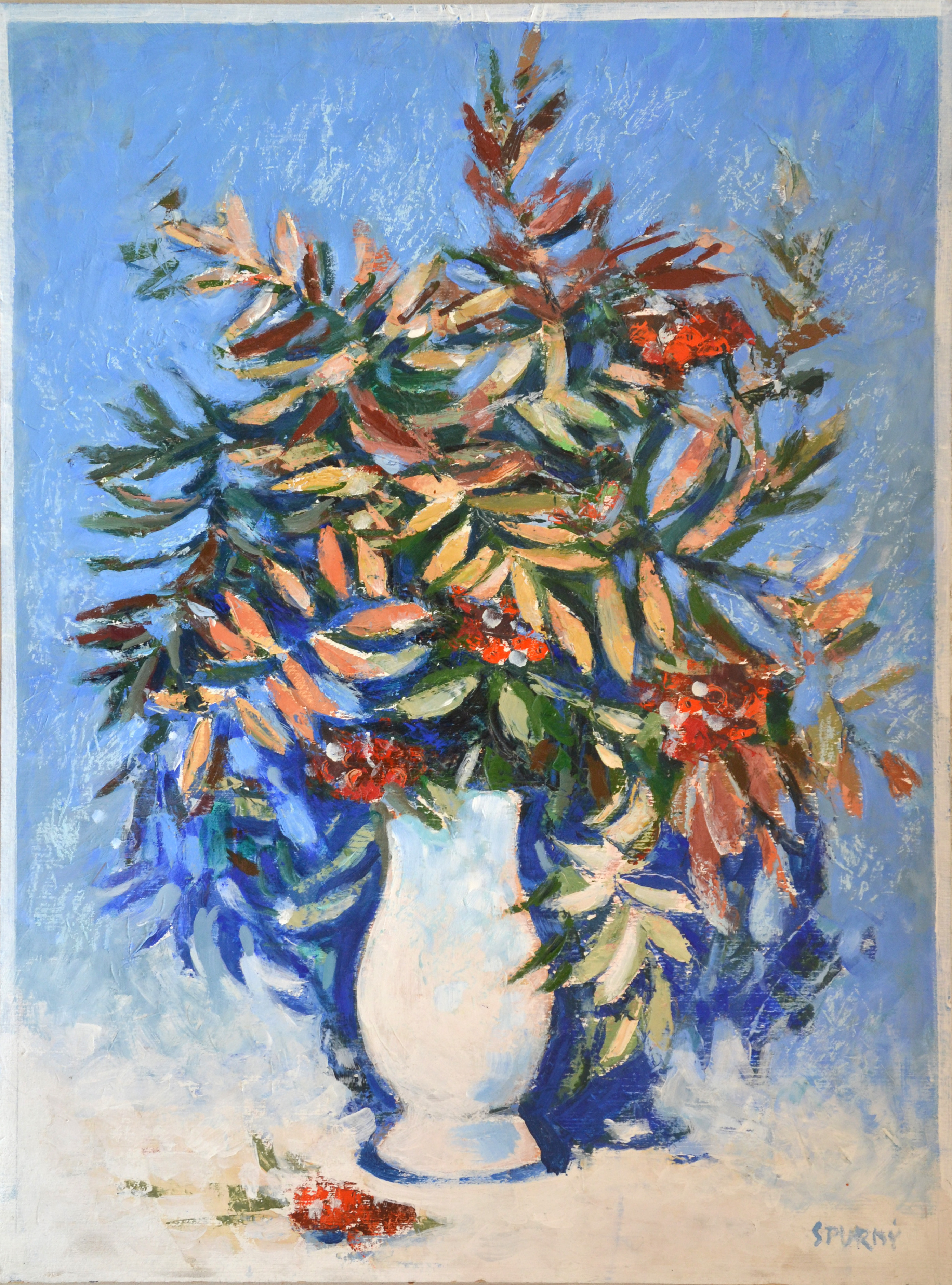 Josef Spurný Jeřabiny olej na kartonu tl. 4mm, 1cm okraj dokola, podlepeno kartonem, 47,5x 63,5 (1)